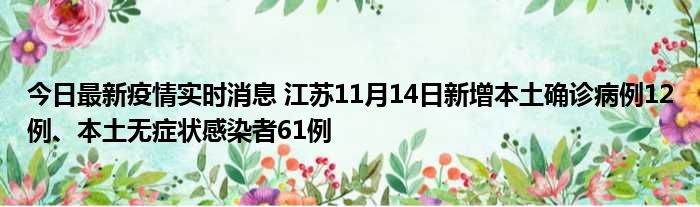 今日最新疫情实时消息 江苏11月14日新增本土确诊病例12例、本土无症状感染者61例
