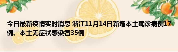 今日最新疫情实时消息 浙江11月14日新增本土确诊病例17例、本土无症状感染者35例