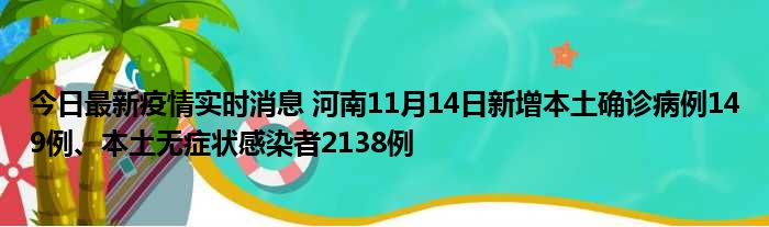 今日最新疫情实时消息 河南11月14日新增本土确诊病例149例、本土无症状感染者2138例