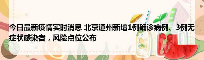今日最新疫情实时消息 北京通州新增1例确诊病例、3例无症状感染者,风险点位公布