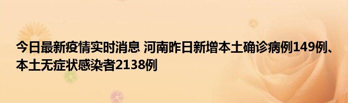 您的位置:首页 >动态频道 > 聚焦疫情 > 今日最新疫情实时消息 河南昨日新增本土确诊病例149例、本土无症状感染者2138例 2022-12-03 10:30:36 • 来源: 导读 免责声明:本文由用户上传,如有侵权请联系删除! 上一篇:今日最新疫情实时消息 广东珠海新增本土确诊病例1例、无症状感染者3例 下一篇:今日最新疫情实时消息 北京通州新增1例确诊病例、3例无症状感染者,风险点位公布