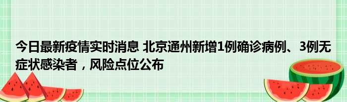 今日最新疫情实时消息 北京通州新增1例确诊病例、3例无症状感染者,风险点位公布