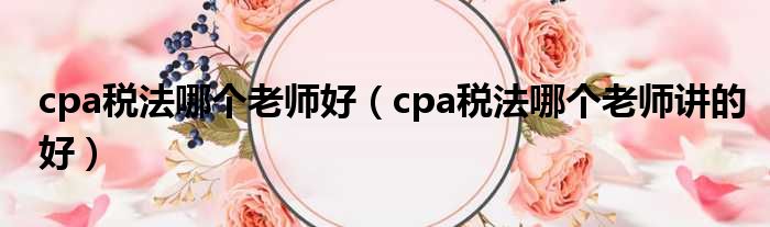 cpa税法哪个老师好(cpa税法哪个老师讲的好)