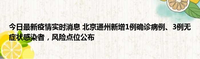 今日最新疫情实时消息 北京通州新增1例确诊病例、3例无症状感染者,风险点位公布
