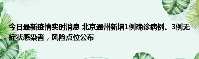 今日最新疫情实时消息 北京通州新增1例确诊病例、3例无症状感染者,风险点位公布