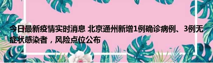 今日最新疫情实时消息 北京通州新增1例确诊病例、3例无症状感染者,风险点位公布