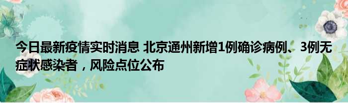 今日最新疫情实时消息 北京通州新增1例确诊病例、3例无症状感染者,风险点位公布
