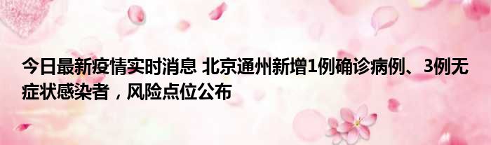今日最新疫情实时消息 北京通州新增1例确诊病例、3例无症状感染者,风险点位公布