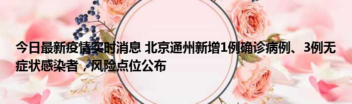 今日最新疫情实时消息 北京通州新增1例确诊病例、3例无症状感染者,风险点位公布
