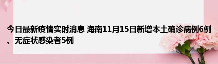 今日最新疫情实时消息 海南11月15日新增本土确诊病例6例、无症状感染者5例