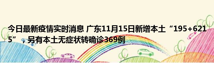 今日最新疫情实时消息 广东11月15日新增本土“195+6215”,另有本土无症状转确诊369例