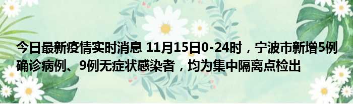 您的位置:首页 >动态频道 > 聚焦疫情 > 今日最新疫情实时消息 11月15日0-24时,宁波市新增5例确诊病例、9例无症状感染者,均为集中隔离点检出 2022-12-04 15:48:28 • 来源: 导读 免责声明:本文由用户上传,如有侵权请联系删除! 上一篇:今日最新疫情实时消息 青海11月15日新增本土确诊2例、本土无症状531例 下一篇:今日最新疫情实时消息 江苏11月15日新增本土确诊病例25例、本土无症状感染者126例