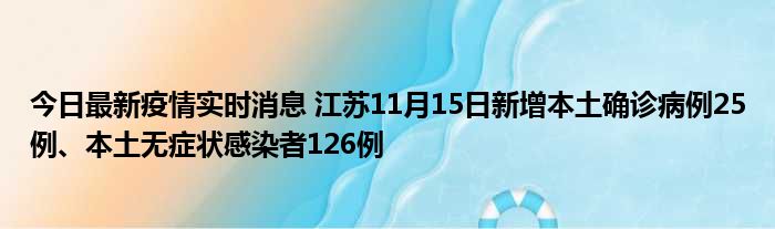 今日最新疫情实时消息 江苏11月15日新增本土确诊病例25例、本土无症状感染者126例