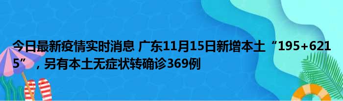 今日最新疫情实时消息 广东11月15日新增本土“195+6215”,另有本土无症状转确诊369例