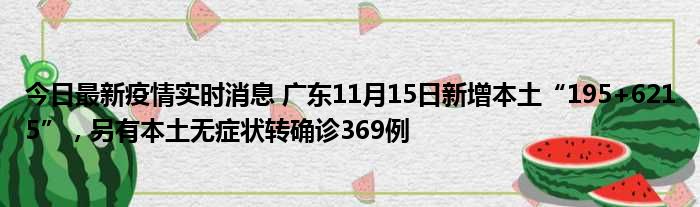 今日最新疫情实时消息 广东11月15日新增本土“195+6215”,另有本土无症状转确诊369例