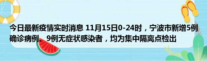 您的位置:首页 >动态频道 > 聚焦疫情 > 今日最新疫情实时消息 11月15日0-24时,宁波市新增5例确诊病例、9例无症状感染者,均为集中隔离点检出 2022-12-04 18:48:20 • 来源: 导读 免责声明:本文由用户上传,如有侵权请联系删除! 上一篇:今日最新疫情实时消息 青海11月15日新增本土确诊2例、本土无症状531例 下一篇:今日最新疫情实时消息 江苏11月15日新增本土确诊病例25例、本土无症状感染者126例