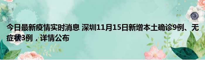 今日最新疫情实时消息 深圳11月15日新增本土确诊9例、无症状3例,详情公布