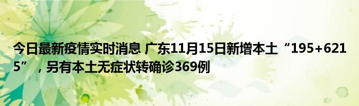 今日最新疫情实时消息 广东11月15日新增本土“195+6215”,另有本土无症状转确诊369例
