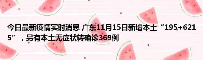 今日最新疫情实时消息 广东11月15日新增本土“195+6215”,另有本土无症状转确诊369例