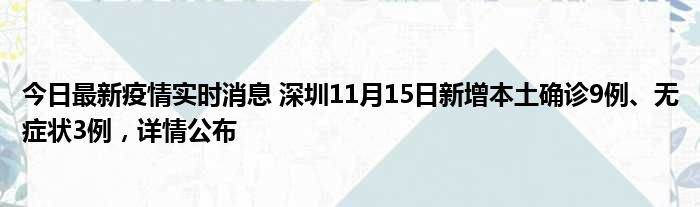 今日最新疫情实时消息 深圳11月15日新增本土确诊9例、无症状3例,详情公布