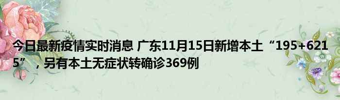 今日最新疫情实时消息 广东11月15日新增本土“195+6215”,另有本土无症状转确诊369例