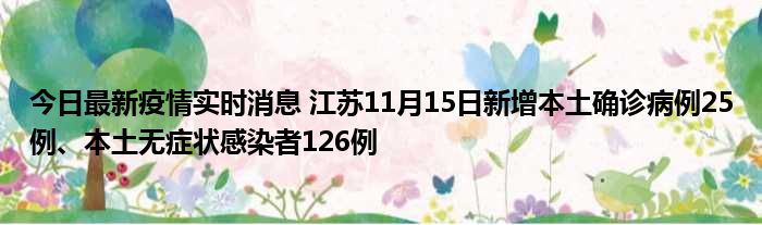 今日最新疫情实时消息 江苏11月15日新增本土确诊病例25例、本土无症状感染者126例