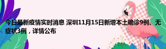 今日最新疫情实时消息 深圳11月15日新增本土确诊9例、无症状3例,详情公布
