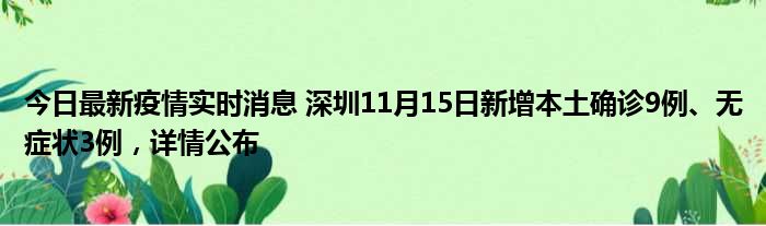 今日最新疫情实时消息 深圳11月15日新增本土确诊9例、无症状3例,详情公布
