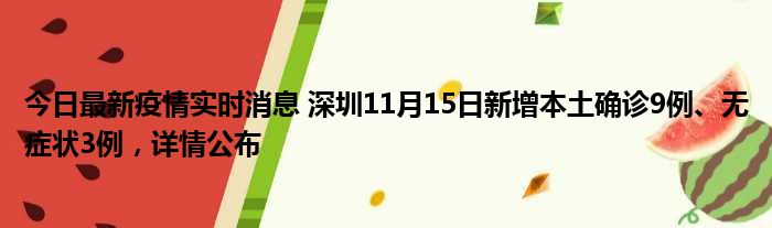 今日最新疫情实时消息 深圳11月15日新增本土确诊9例、无症状3例,详情公布