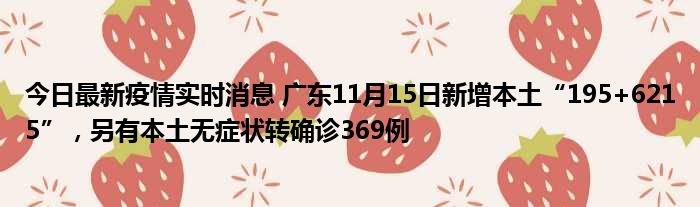今日最新疫情实时消息 广东11月15日新增本土“195+6215”,另有本土无症状转确诊369例