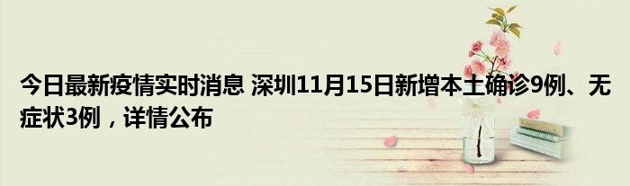 深圳卫健委通报,11月15日0-24时,深圳新增9例新冠肺炎确诊病例和3例新冠病毒无症状感染者
