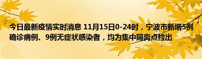 您的位置:首页 >动态频道 > 聚焦疫情 > 今日最新疫情实时消息 11月15日0-24时,宁波市新增5例确诊病例、9例无症状感染者,均为集中隔离点检出 2022-12-04 23:48:20 • 来源: 导读 免责声明:本文由用户上传,如有侵权请联系删除! 上一篇:今日最新疫情实时消息 青海11月15日新增本土确诊2例、本土无症状531例 下一篇:今日最新疫情实时消息 江苏11月15日新增本土确诊病例25例、本土无症状感染者126例