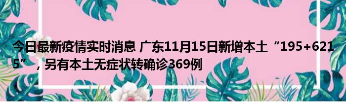 今日最新疫情实时消息 广东11月15日新增本土“195+6215”,另有本土无症状转确诊369例
