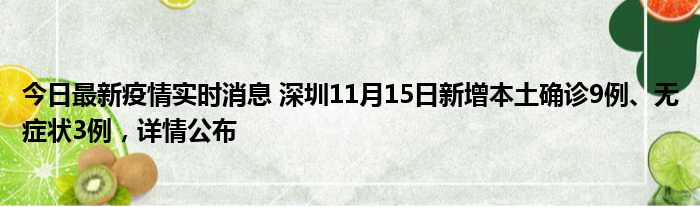 深圳卫健委通报,11月15日0-24时,深圳新增9例新冠肺炎确诊病例和3例新冠病毒无症状感染者