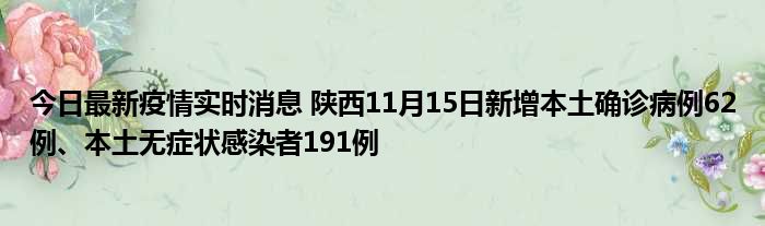 今日最新疫情实时消息 陕西11月15日新增本土确诊病例62例、本土无症状感染者191例
