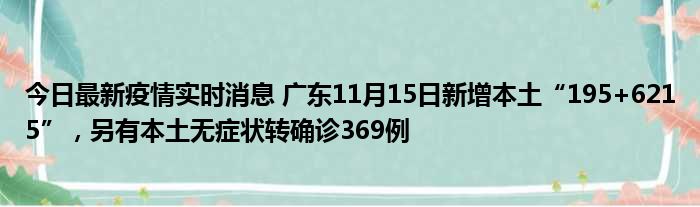 今日最新疫情实时消息 广东11月15日新增本土“195+6215”,另有本土无症状转确诊369例