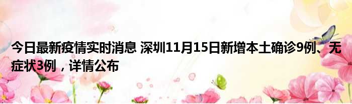 深圳卫健委通报,11月15日0-24时,深圳新增9例新冠肺炎确诊病例和3例新冠病毒无症状感染者