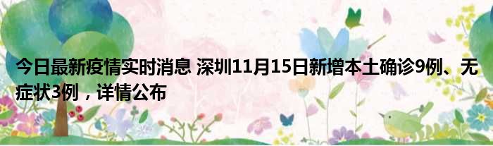 深圳卫健委通报,11月15日0-24时,深圳新增9例新冠肺炎确诊病例和3例新冠病毒无症状感染者