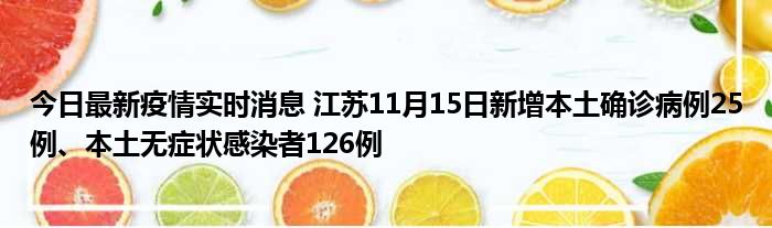 今日最新疫情实时消息 江苏11月15日新增本土确诊病例25例、本土无症状感染者126例