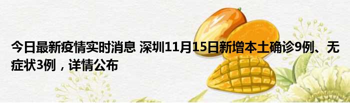 今日最新疫情实时消息 深圳11月15日新增本土确诊9例、无症状3例,详情公布