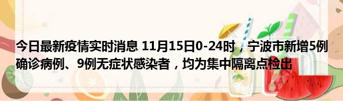 您的位置:首页 >动态频道 > 聚焦疫情 > 今日最新疫情实时消息 11月15日0-24时,宁波市新增5例确诊病例、9例无症状感染者,均为集中隔离点检出 2022-12-05 09:04:17 • 来源: 导读 免责声明:本文由用户上传,如有侵权请联系删除! 上一篇:今日最新疫情实时消息 青海11月15日新增本土确诊2例、本土无症状531例 下一篇:今日最新疫情实时消息 江苏11月15日新增本土确诊病例25例、本土无症状感染者126例