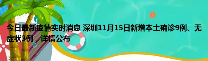 今日最新疫情实时消息 深圳11月15日新增本土确诊9例、无症状3例,详情公布