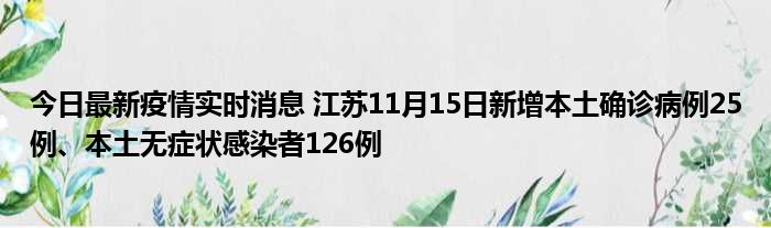 今日最新疫情实时消息 江苏11月15日新增本土确诊病例25例、本土无症状感染者126例