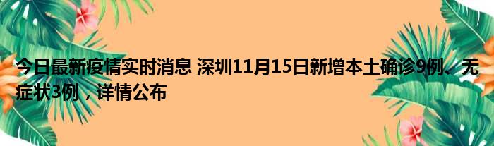 今日最新疫情实时消息 深圳11月15日新增本土确诊9例、无症状3例,详情公布
