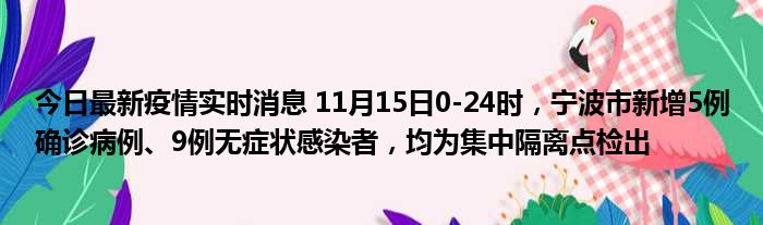 您的位置:首页 >动态频道 > 聚焦疫情 > 今日最新疫情实时消息 11月15日0-24时,宁波市新增5例确诊病例、9例无症状感染者,均为集中隔离点检出 2022-12-05 11:04:15 • 来源: 导读 免责声明:本文由用户上传,如有侵权请联系删除! 上一篇:今日最新疫情实时消息 青海11月15日新增本土确诊2例、本土无症状531例 下一篇:今日最新疫情实时消息 江苏11月15日新增本土确诊病例25例、本土无症状感染者126例
