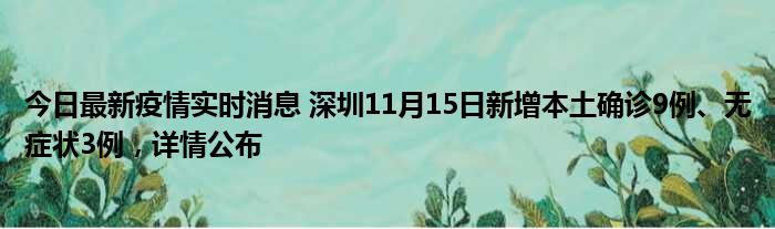 深圳卫健委通报,11月15日0-24时,深圳新增9例新冠肺炎确诊病例和3例新冠病毒无症状感染者