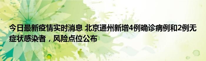 今日最新疫情实时消息 北京通州新增4例确诊病例和2例无症状感染者,风险点位公布