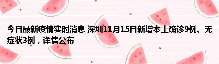 深圳卫健委通报,11月15日0-24时,深圳新增9例新冠肺炎确诊病例和3例新冠病毒无症状感染者