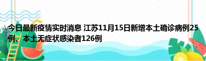今日最新疫情实时消息 江苏11月15日新增本土确诊病例25例、本土无症状感染者126例