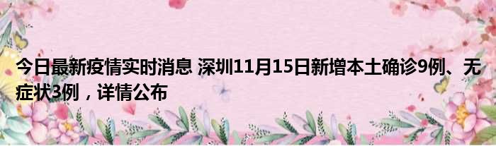 深圳卫健委通报,11月15日0-24时,深圳新增9例新冠肺炎确诊病例和3例新冠病毒无症状感染者